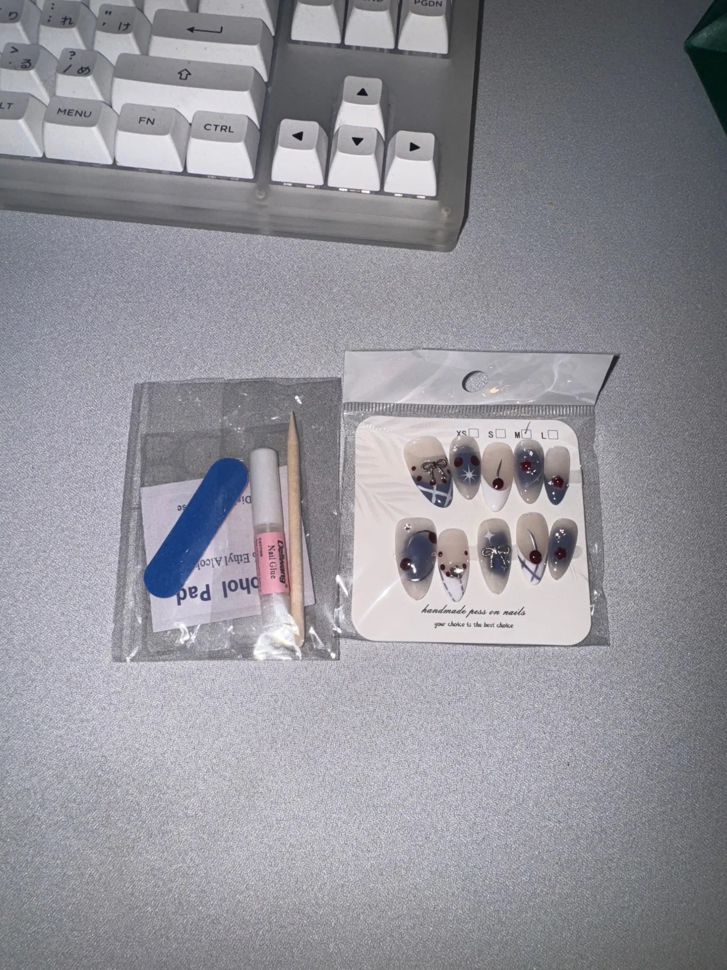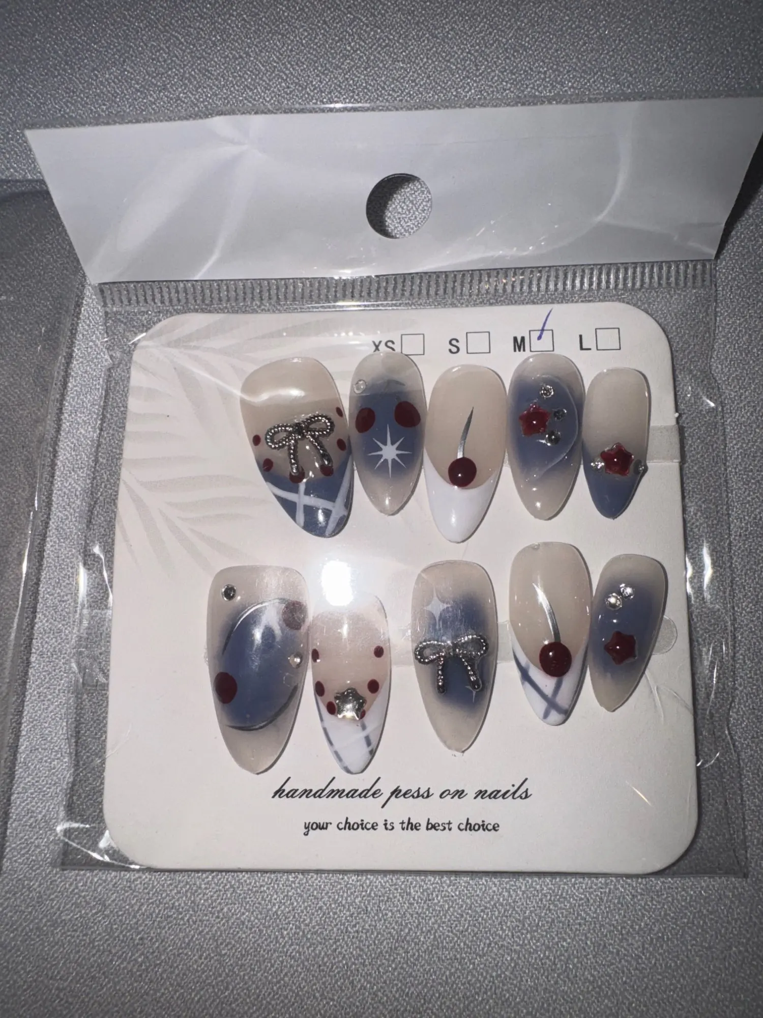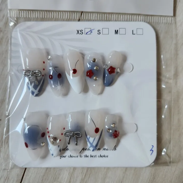 Marsvera - Sweet Cherry & Bow Handmade French Almond Press-On Nails